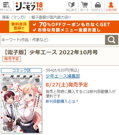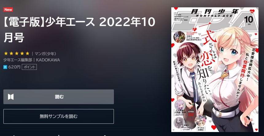 コミックシーモアで少年エース・2022年10月号を税込186円で読む