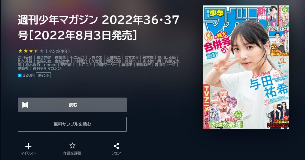 コミックシーモアで週刊少年マガジン・2022年36・37号を税込96円で読む
