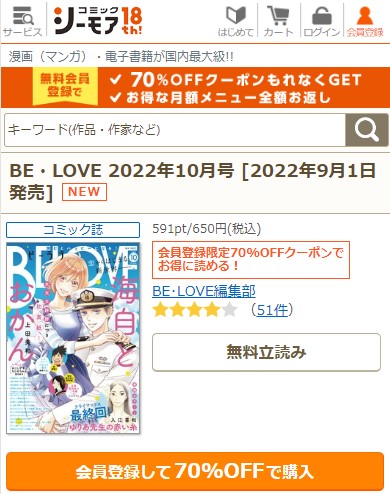 コミックシーモアでBE・LOVE・2022年10月号を税込194円で読む