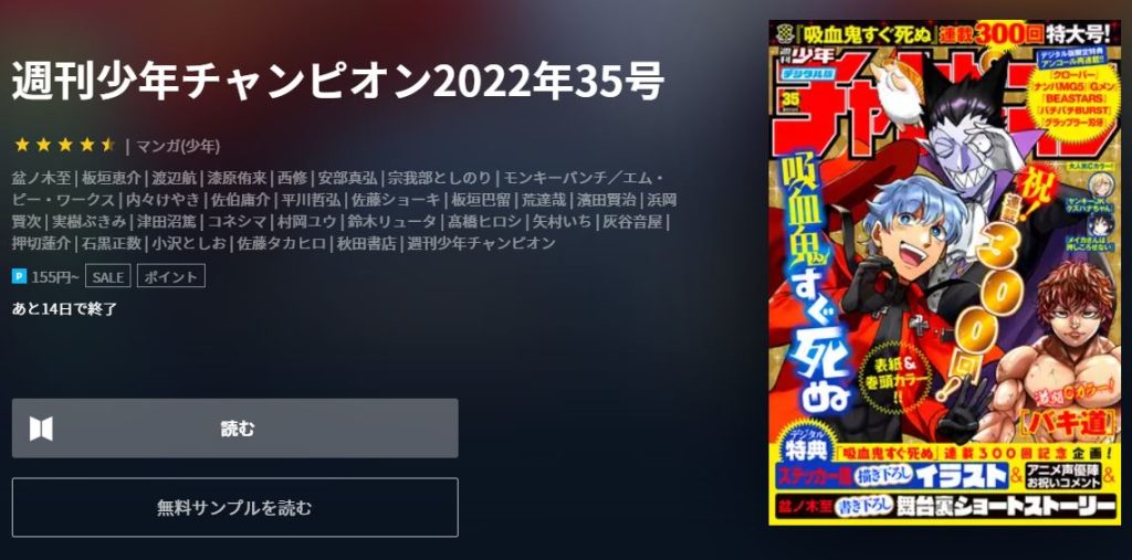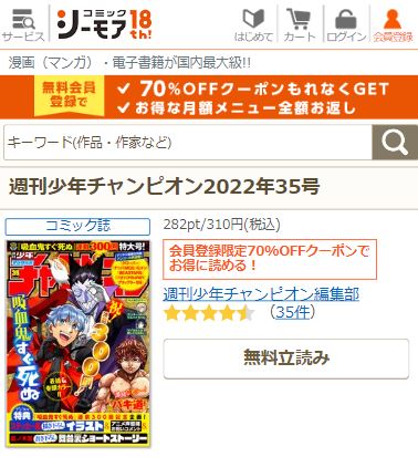 コミックシーモアで週刊少年チャンピオン・2022年35号を税込92円で読む