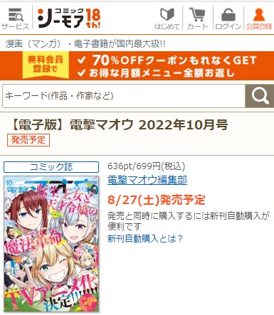 コミックシーモアで電撃マオウ・2022年10月号を税込210円で読む