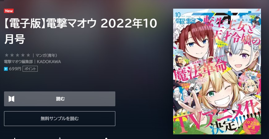 そのクーポンを利用すれば「電撃マオウ・2022年10月号」(699円)が1冊70%オフ(=税込210円)で読めます。